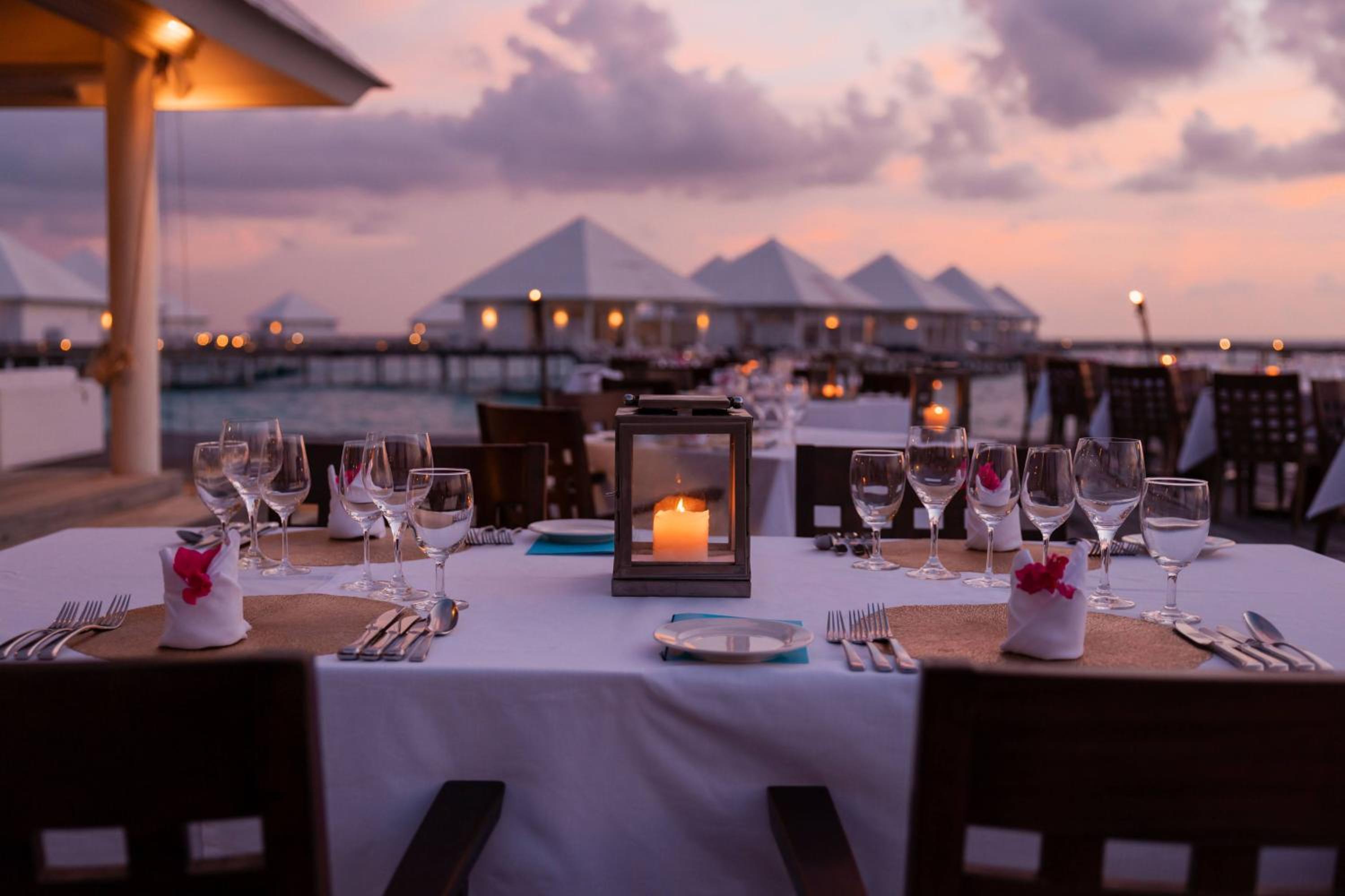 Насладете се на разнообразие от кухни в основния ресторант, с тематични вечери и барбекюта. Поглезете се с пресни морски дарове и международни ястия в ресторант Water Villas и изберете от три бара за селекция от напитки.