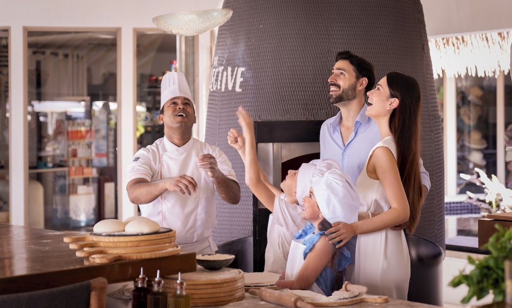 Вечеряйте в един от 4-те ресторанта, предлагащи международна кухня, вземете закуски в кафенето и се смесете на безплатната ежедневна рецепция. Отпийте напитки в бара или салоните край басейна.