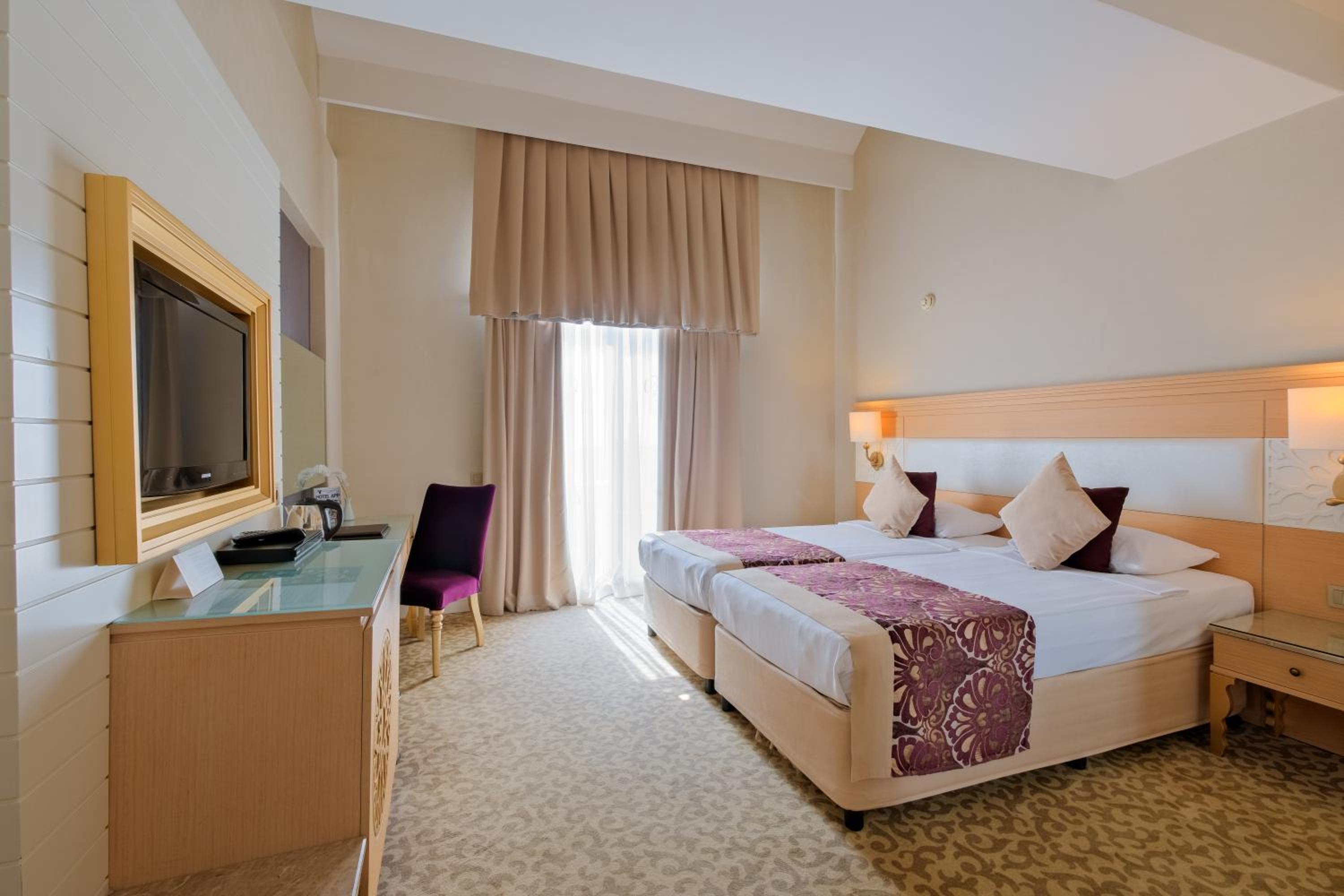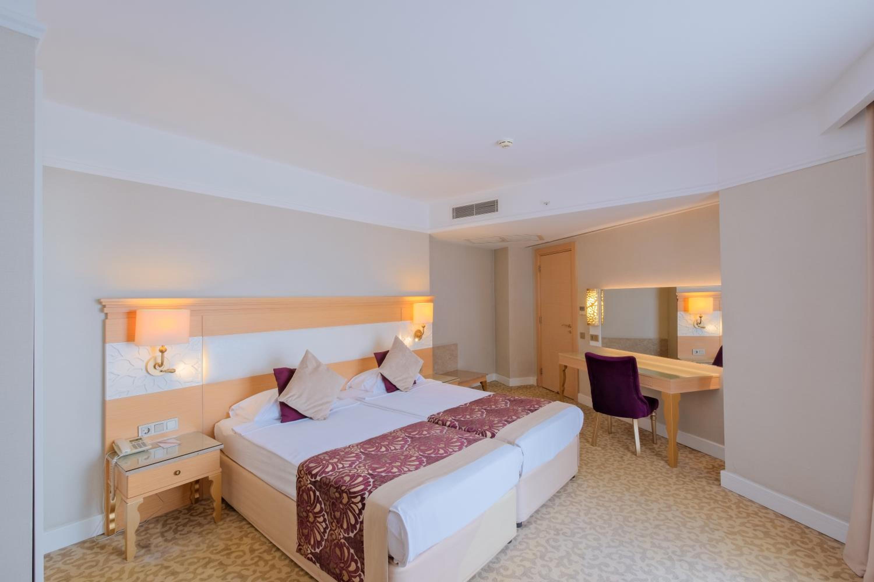 Хареса ми: Всичко беше по-добре, отколкото можех да очаквам! Особено за цената (по-ниска от другите хотели наоколо). Мястото не крещи „аз съм луксозен курорт“, това много ми хареса, защото луксът ме кара да се чувствам неудобно. Персоналът на хотела наистина се грижи да осигури качество във всички аспекти. Стаята беше чиста, удобна и шумоизолирана. Храната беше разнообразна и вкусна. Когато ресторантът е затворен, има други места, където сервират храна и напитки, дори на плажа. Самият плаж е добре поддържан и внимателно проектиран. Има подземен тунел, който ви спестява от пресичане на улици и трансфер с електрокар до плажа. Има много дейности и съоръжения по всяко време, така че трябваше да начертая схема, за да ни помогне да решим къде и кога да отидем. Ние нямаме деца и не харесваме шума, така че сме щастливи как аниматорите се справиха: децата наоколо бяха заети, нямаше хаос. Улиците наоколо са пълни с магазини, има редовни автобуси до Сиде и Манавгат. Можете дори да се разходите до храма Сиде и Аполон до брега, на около 2 часа път.