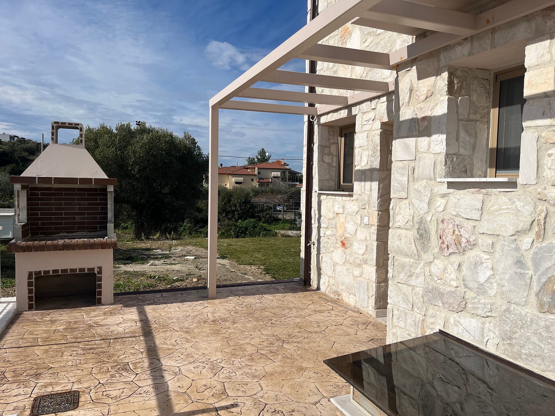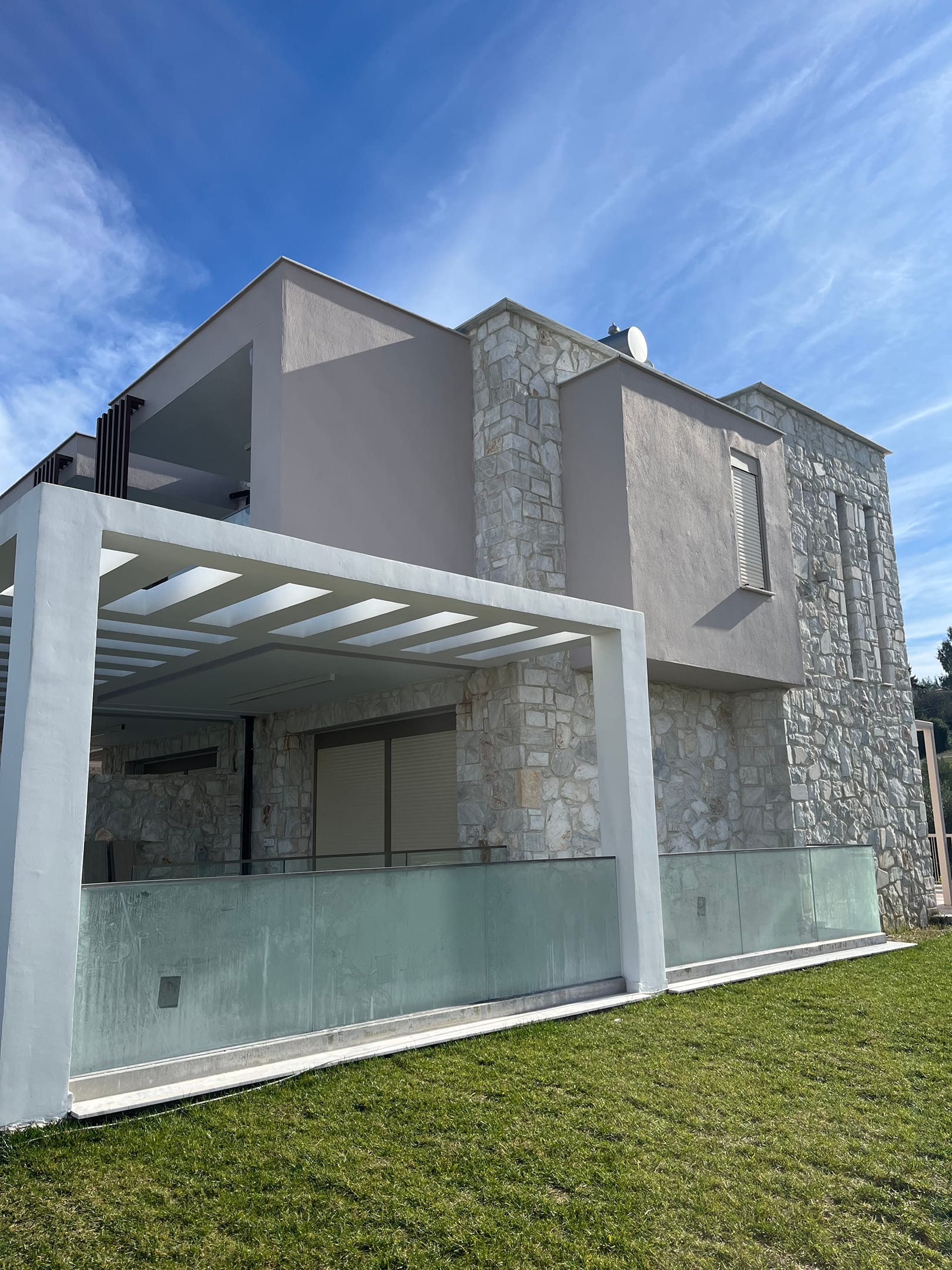 Villa Aquaris is located in Chanioti with a perfect view over the Toroneos bay. Villa has a privet parking space for 2 cars, a BBQ area, outdoor jaccuzi for 5 people, sunbeds and umbrellas.Villa Aquaris consists of 3 levels. On the ground floor there is a well equipped kitchen, a saloon with a sofa and a flat TV, a terrace with the dining area overlooking the green lawn of the property and a bathroom. Upstairs there is a master bedroom with the view of the village and the glimpse of the emerald sea, a furnished balcony and the entire bathroom. Downstairs there is a room with a sofa, a flat TV and the entire bathroom. Next to there is a bedroom furnished with two single beds.
