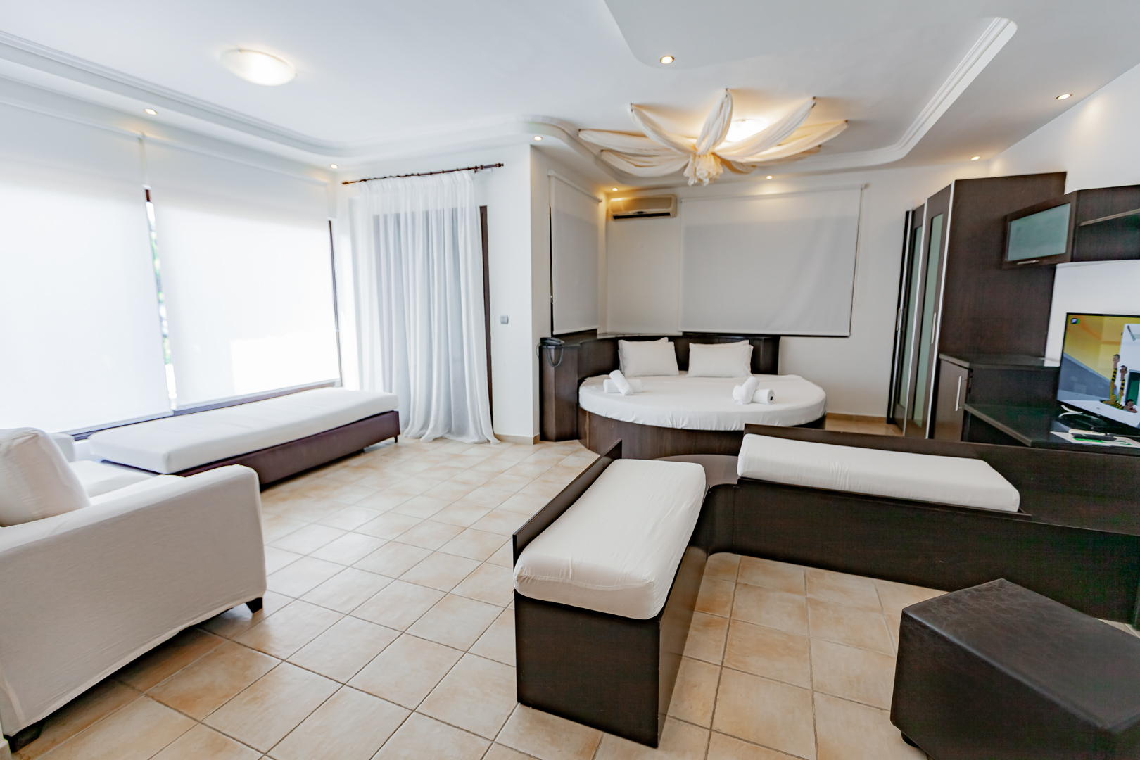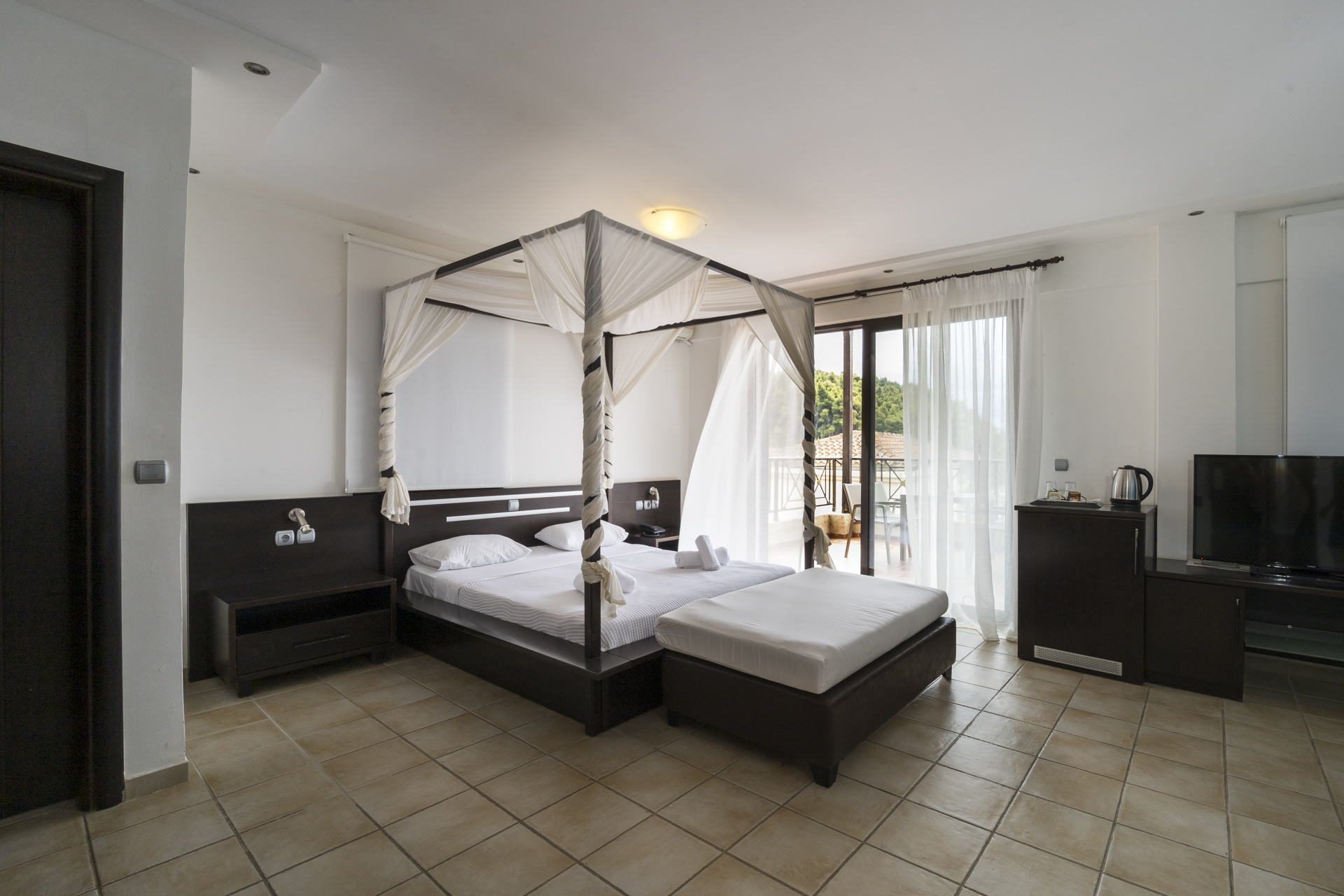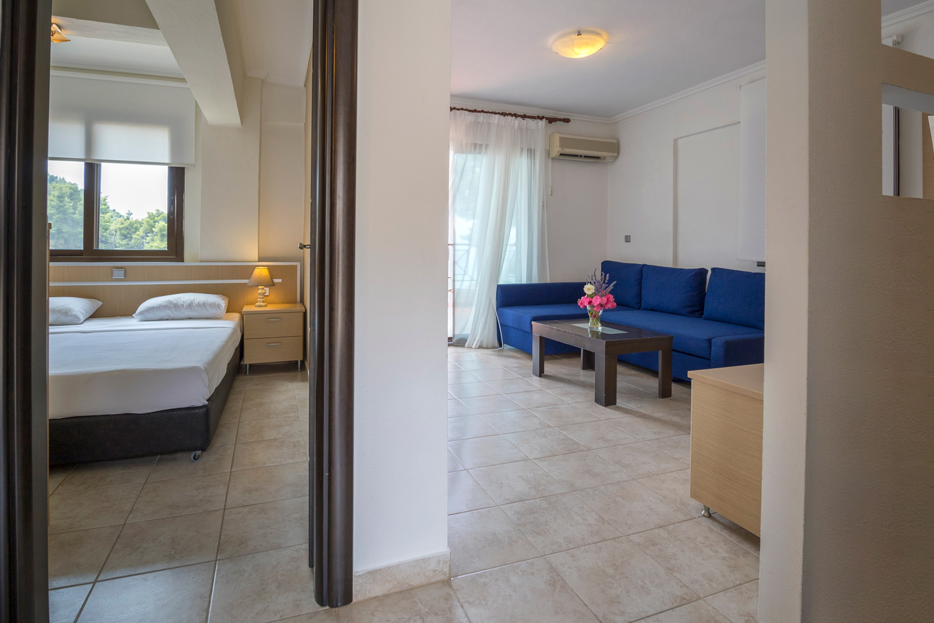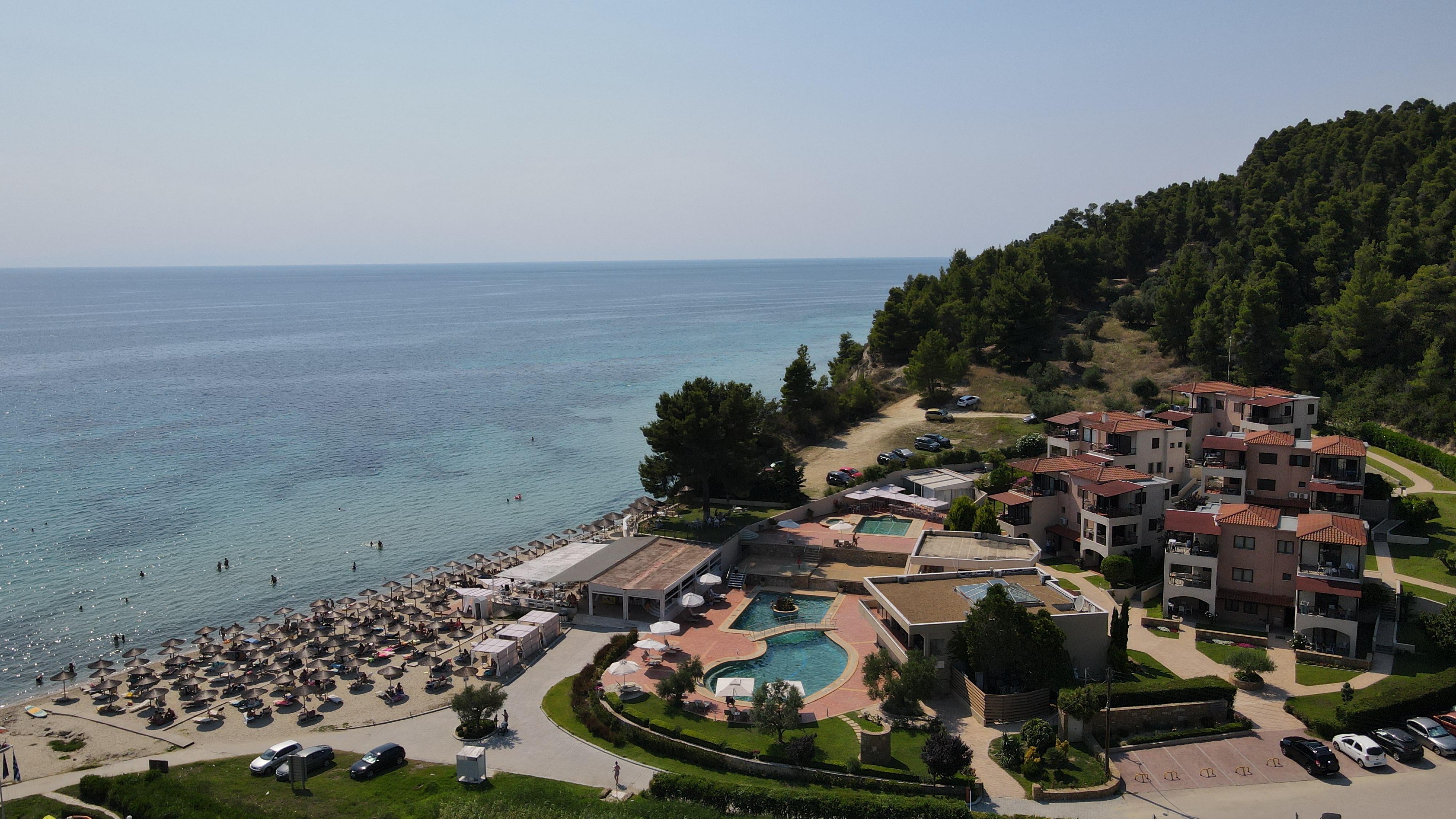The 4-star seaside resort of Elani Bay Resort is located in Elani Bay just 4km away from Siviri Village. Only a short walk from the coast, this resort is perfectly situated for those searching for a beach-side retreat. The hotel has 2 swimming pools for adults, and 1 for babies, a private beach, a breakfast room and a snack bar. Lunch and dinner option available on extra charge at the a' la carte tavern. The hotel is surrounded by pine trees and the beach in front of the hotel has umbrellas and sun loungers. Elani Bay consists of double rooms, one-bedroom apartments with a seating area and panoramic views, as well as one or two-bedroom suites and superior suites. All rooms come with a 32 '' flat-screen satellite TV, free WiFi, a fridge, a kettle, a safe, and a balcony or terrace. Free sun beds and umbrellas are provided for hotel guests at the pool area as well as at the beach with minimum consumption.. There is a tennis court and basketball court within 300 m from the hotel. In Siviri you can find taverns, supermarkets and bars.