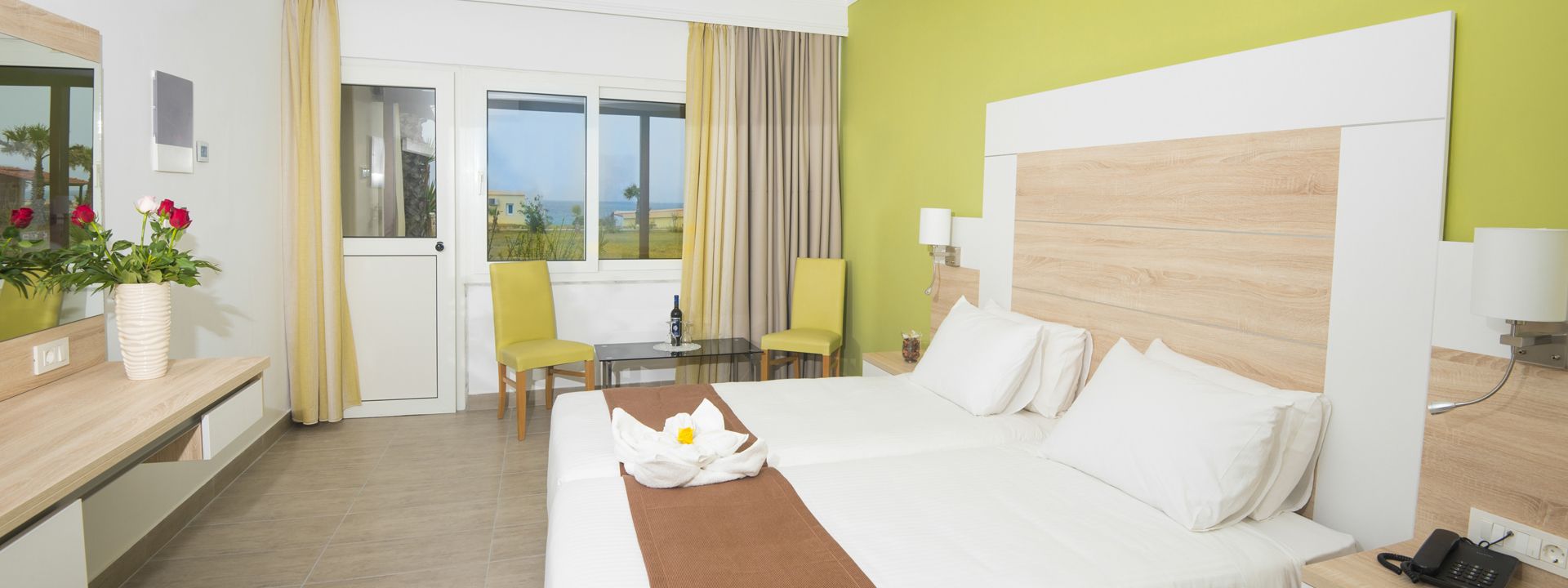 Welcome to our 4-star sanctuary, perfectly situated along a pristine sandy beach, merely a stone`s throw from the airport and adjacent to the charming fishing hamlet of Mastichari. We`ve meticulously prepared 347 spacious, inviting guestrooms for you, each offering magnificent views of either our lush gardens or the azure expanse of the Aegean Sea. Embark on a culinary journey with us, where global flavors mingle with authentic Greek cuisine, served alongside refreshing beverages at our beach bar and signature cocktails by the poolside. Explore winding cobblestone pathways meandering through olive and cedar groves, indulge in leisurely moments on the beach, or immerse yourself in the vastness of our swimming pool. Here, amidst a serene ambiance designed for relaxation, your perfect vacation awaits.