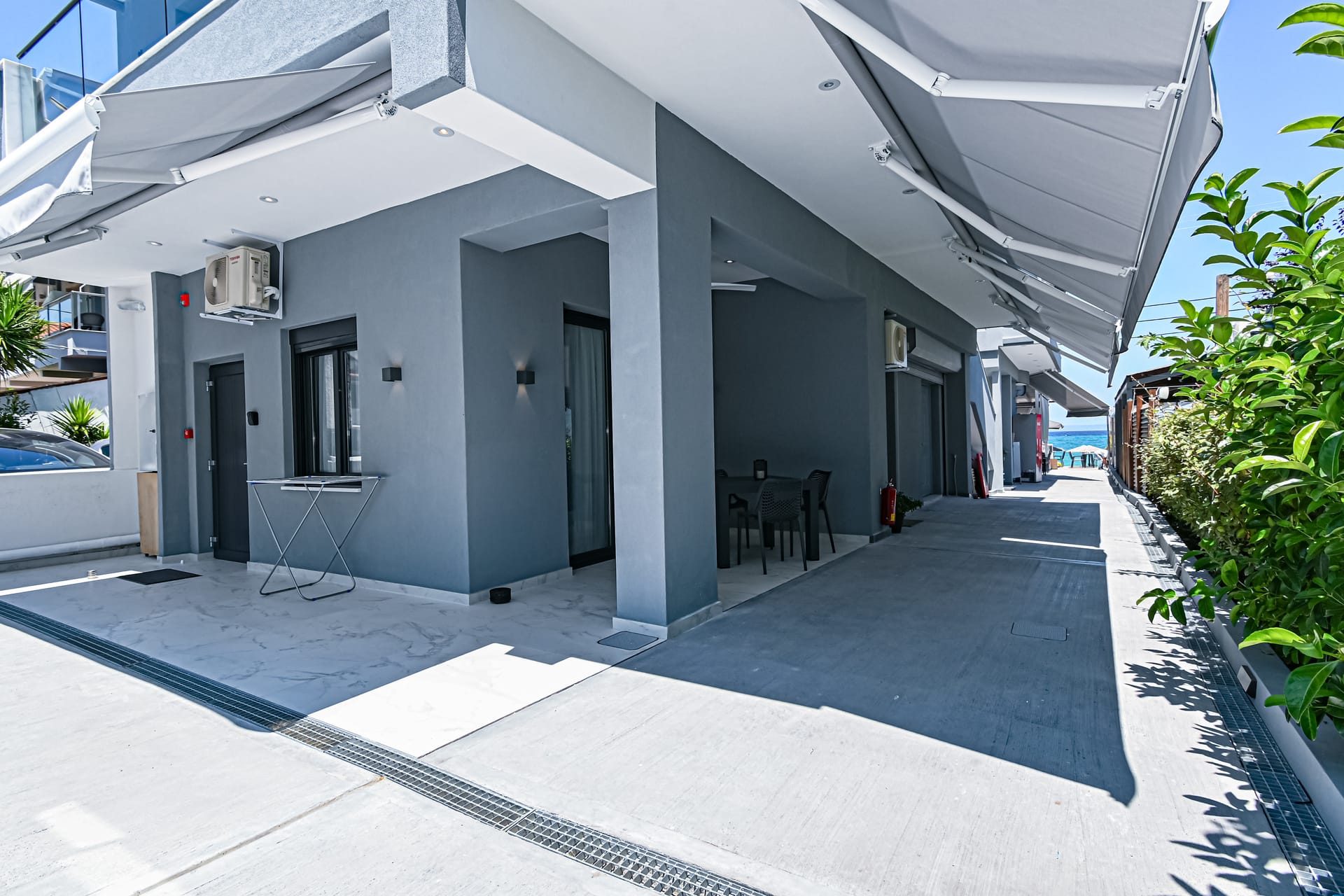 Located along the seaside and right in front of the beach of vibrant Pefkohori, the contemporary elegance and subtile luxury of the brand new (2023) Kima Premium Apartments offers a discrete and refined holiday or business getaway in boutique style - unique for this area of Halkidiki.