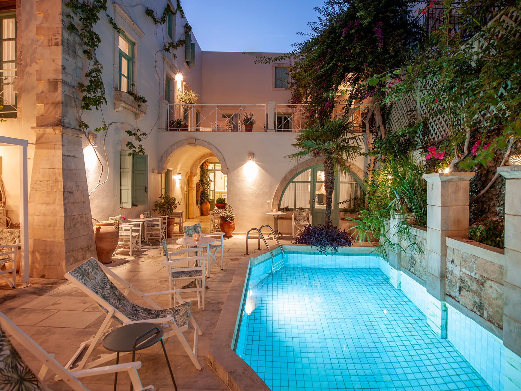 Mythos Suites Hotel is a charming Rethymnon City hotel that is situated in the center of old Venetian town. Mythos Suites Hotel offers you accommodation in Crete, in spacious bright apartments tastefully decorated and placed around a flowery courtyard where a small sweet water swimming pool turns it in to an ''OASIS'' of calmness.