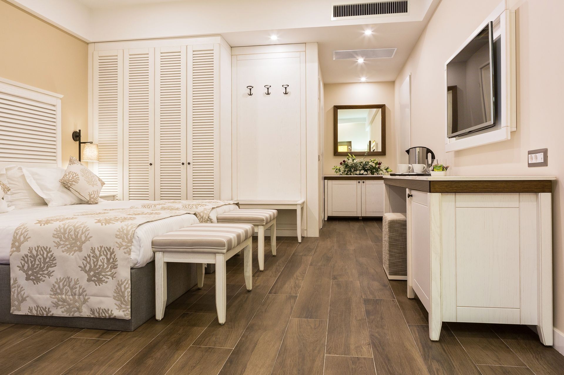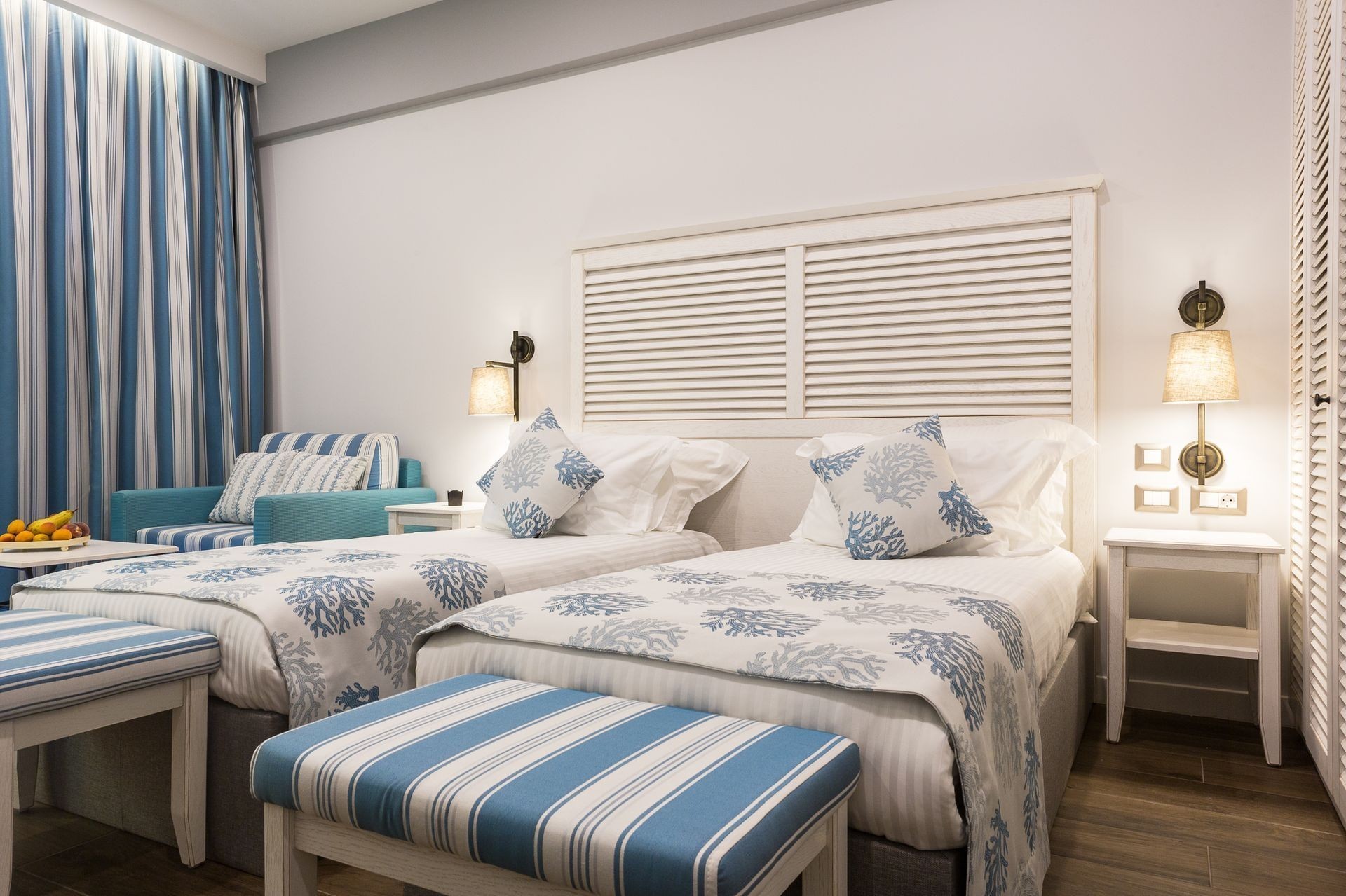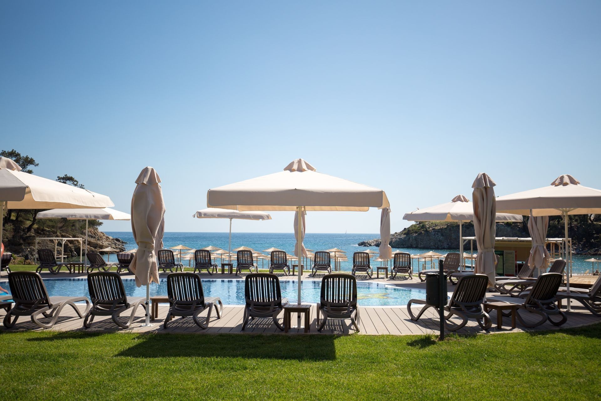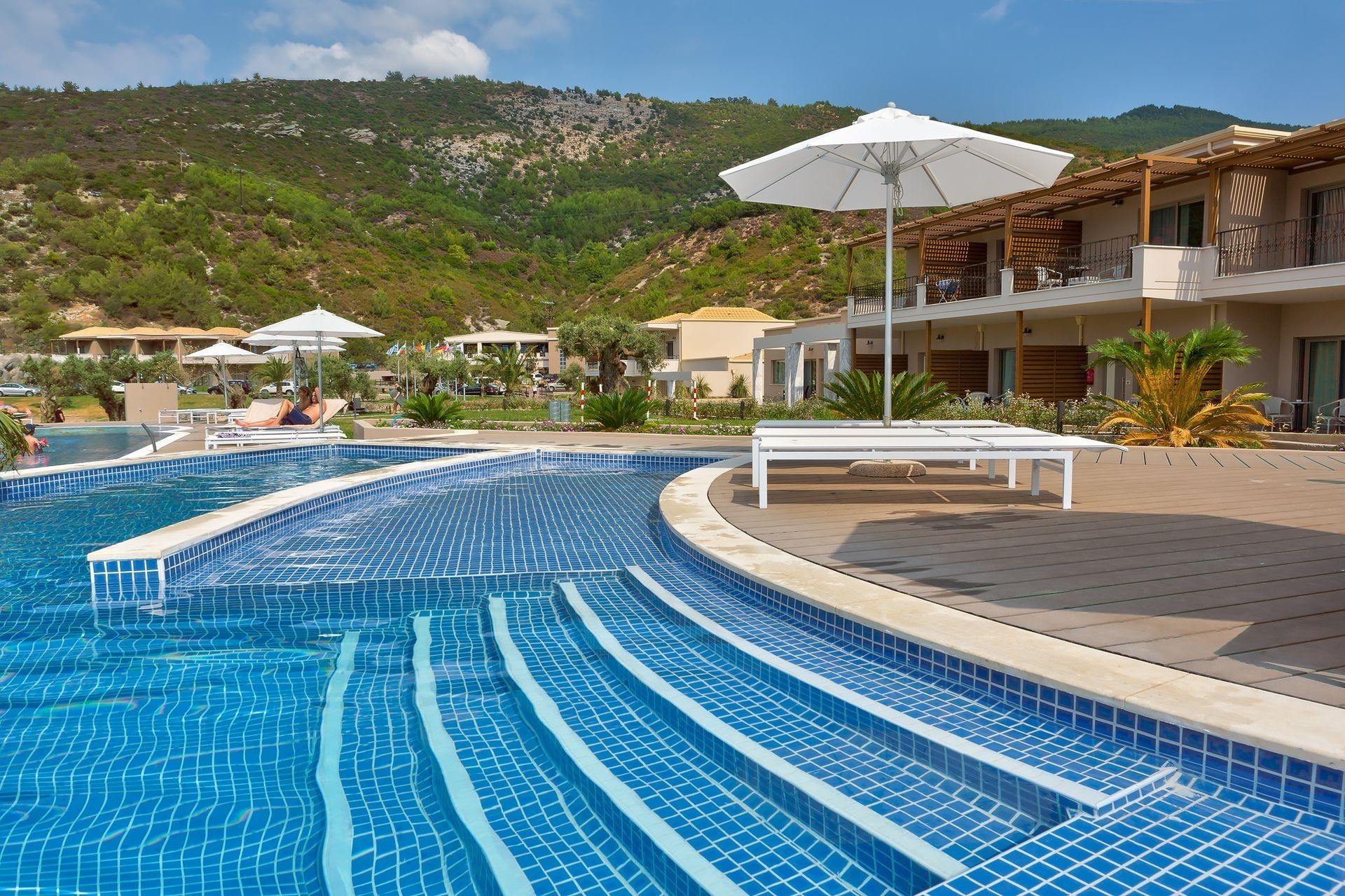The beachfront 5-star Thassos Grand is placed in Agios Ioannis, a small bay in the southern part of Thassos island. The prperty features 173 luxury rooms. The accommodation offers housekeeping service, room services and shopping service for the guests' convenience. Thassos Grand offers a panoramic view to its guests. Each room is spacious, simply furnished and offers air condition, mini bar, satelite TV, WiFi access, direct dial telephone, coffee and tea making facilities, private bathroom with tub and shower, baby cot upon request, hairdryer, safe deposit box, bathrobes and slippers, toiletries, private balcony or terrace and a sitting area.
